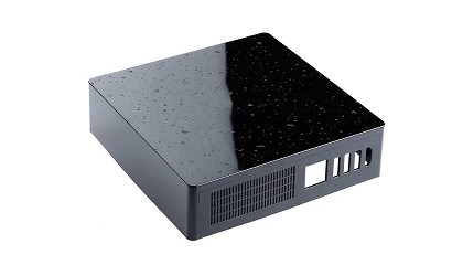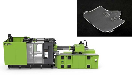Carcasa de ónix opaco de ABS realizada en colaboración con Sepro En otra muestra, Sepro Robotique producirá una carcasa de estilo ónix en una inyectora IntElect 130/520-450 totalmente eléctrica. Utilizando