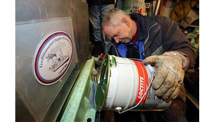 artesanos jubilados, eso no suponía un problema. En lo profundo de las entrañas del ‘Prinz Heinrich’, su tarea ese día consistía en verter un nuevo cimiento sobre el que reposarían Jonny y Hinni, usando Loctite Fixmaster Marine Chocking de Henkel. Loctite Fixmaster Marine Chocking es una resina epoxi de dos componentes que ofrece una enorme resistencia contra la presión