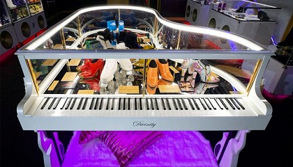 Beautiful Collection: Prince's Custom Shoes’ - 25/10/2021: La exposición incluye un piano de cola transparente, guitarras que se pueden tocar y una imagen puntillista de Prince de 3 metros de altura
