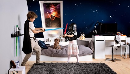 Galactic Night de Velux ofrecen una gama de cortinas que cuentan las épicas batallas entre las fuerzas de la oscuridad y la luz. La colección cuenta con cuatro diseños especiales