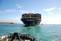Las maniobras con buques de estas enormes dimensiones y calados dependen en gran medida de la pericia en la operativa de remolque, que tienen una intervención definitiva, pues deben calcular exactamente la trayectoria de entrada del portacontenedores, debido a su gran calado, y llevarlo a su punto de atraque, moviendo el enorme buque en reducidas dimensiones.