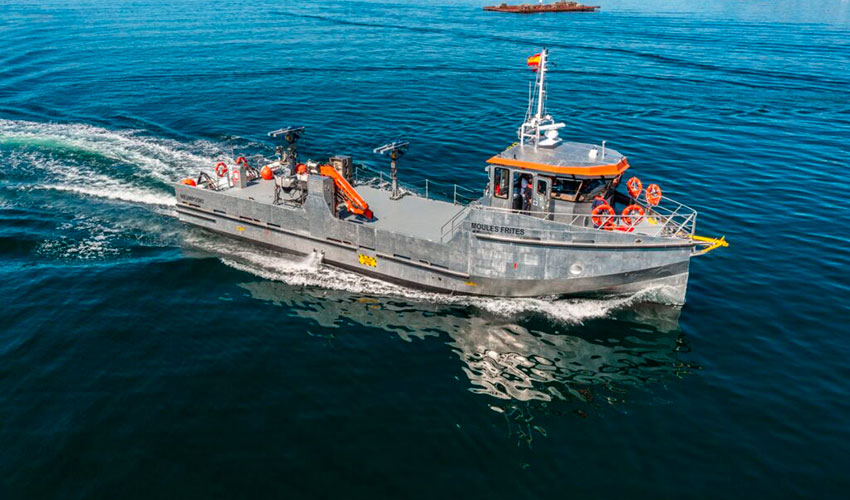 El ‘Moules Frites’ ha sido diseñado pensando en la operativa en entornos exigentes: su poco calado y propulsores hidráulicos abatibles le otorgan gran maniobrabilidad, incluso en aguas someras. La embarcación puede alojar a 8 tripulantes y cuenta con espacios funcionales como cocina-comedor, vestuario con baño, taller mecánico y un puente de navegación con vista de 360º y sistema de automatización avanzada, que centraliza el control de maquinaria y servicios desde una única estación.