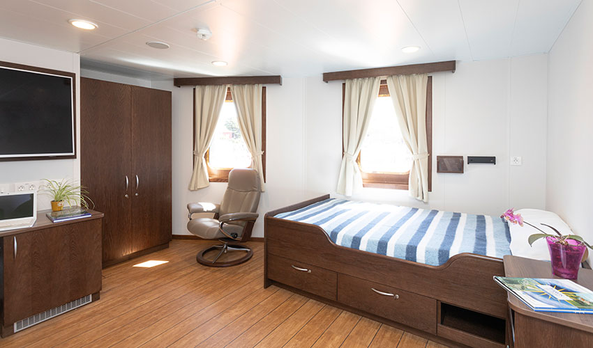 El 'Austri Enabler' puede alojar cómodamente a un total de 120 personas, distribuidas entre 97 técnicos especialistas y 23 tripulantes. Para ello dispone de 52 camarotes individuales y 34 dobles, que garantizan alojamiento adecuado para largas estancias de hasta 30 días en alta mar.