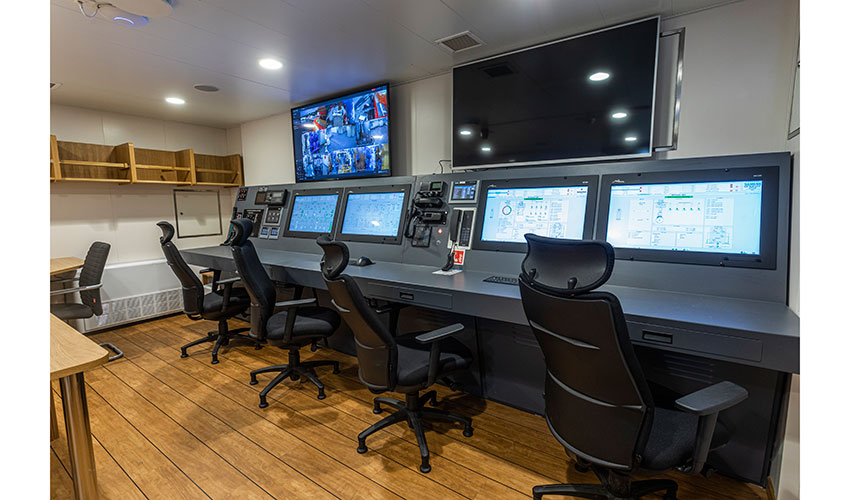 Una de las características más revolucionarias del ‘Austri Enabler’ es su sistema de propulsión híbrido diésel-eléctrico, que incorpora dos hélices cicloidales (eVSP) accionadas por motores eléctricos de imanes permanentes. Este sistema no solo aporta mayor eficiencia y maniobrabilidad en maniobras complejas, sino que también está preparado para operar en el futuro con hidrógeno líquido portador (LOHC), una tecnología emergente que abre la puerta a la descarbonización total de la navegación.