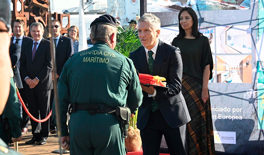 Durante la ceremonia, el ministro subrayó que el navío “es un ejemplo de la política de cooperación europea, que contribuye a fortalecer la cohesión y a reforzar la protección de nuestras fronteras, las españolas, que también son las exteriores de la Unión Europea”.