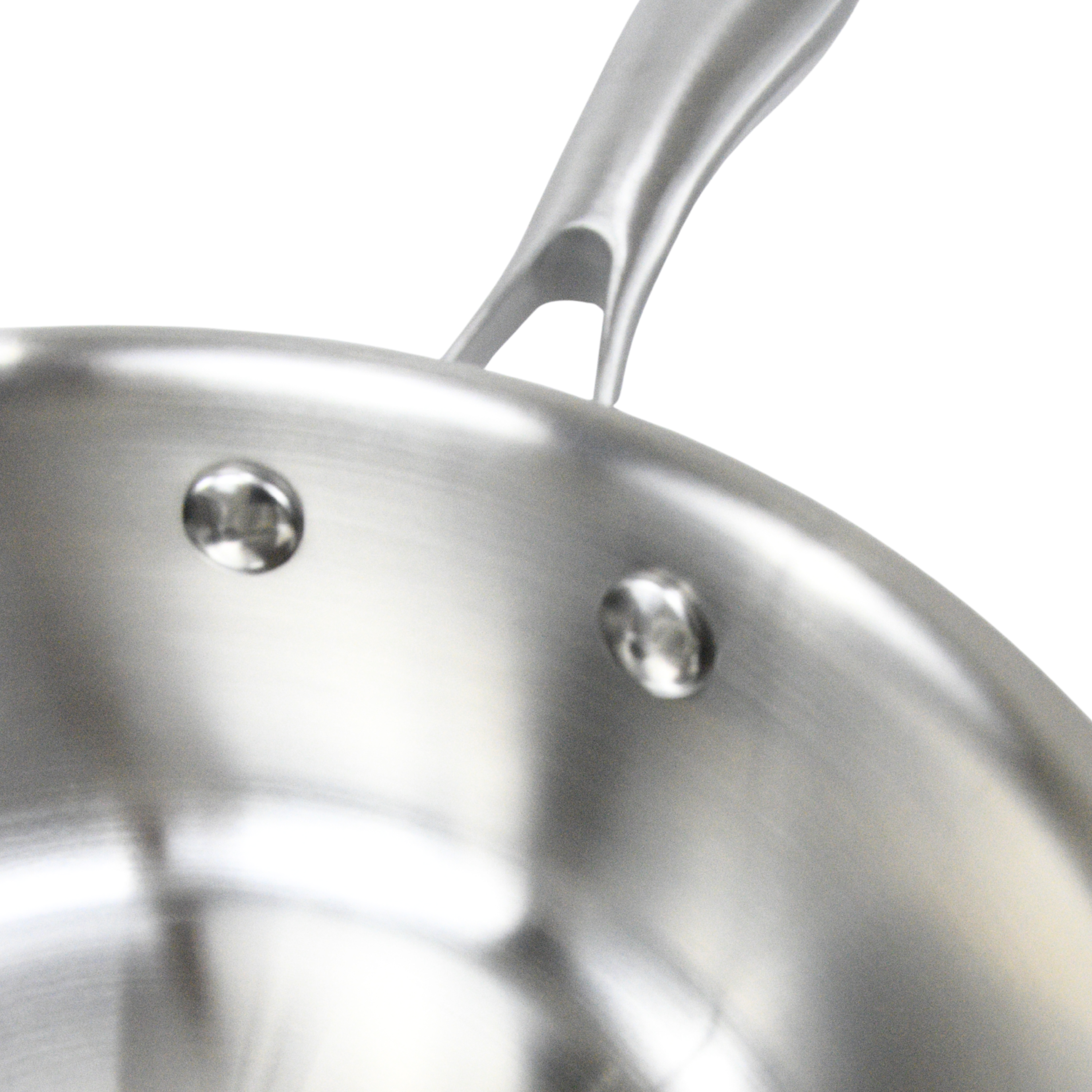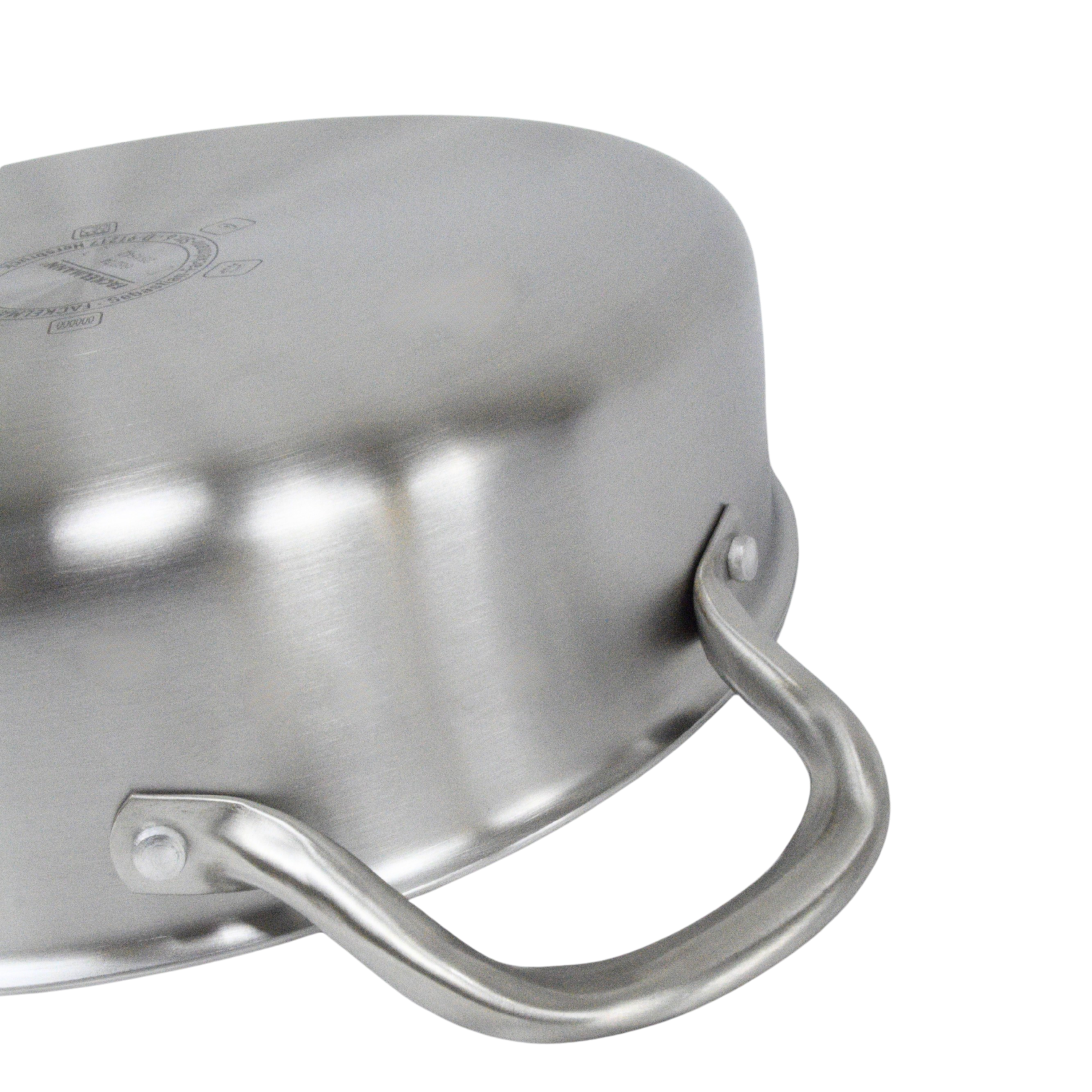 La innovación principal de Vita3 se encuentra en el material Triply, un material compuesto por tres capas de metal que aportan ventajas únicas en el uso diario. La superficie superior, de acero inoxidable 18/10, ofrece durabilidad, resistencia a la corrosión e higiene. El núcleo de aluminio garantiza una distribución homogénea del calor y un mayor ahorro energético, mientras que la base inferior, de acero inoxidable 18/0, asegura compatibilidad con todo tipo de cocinas, incluida la inducción, además de una elevada resistencia al uso intensivo.