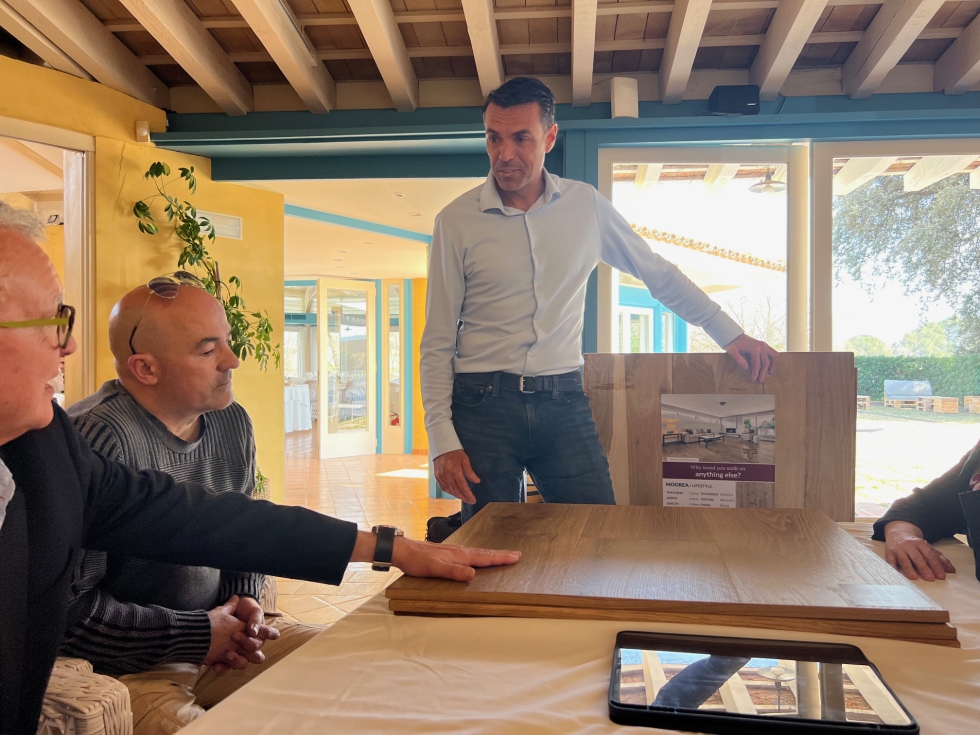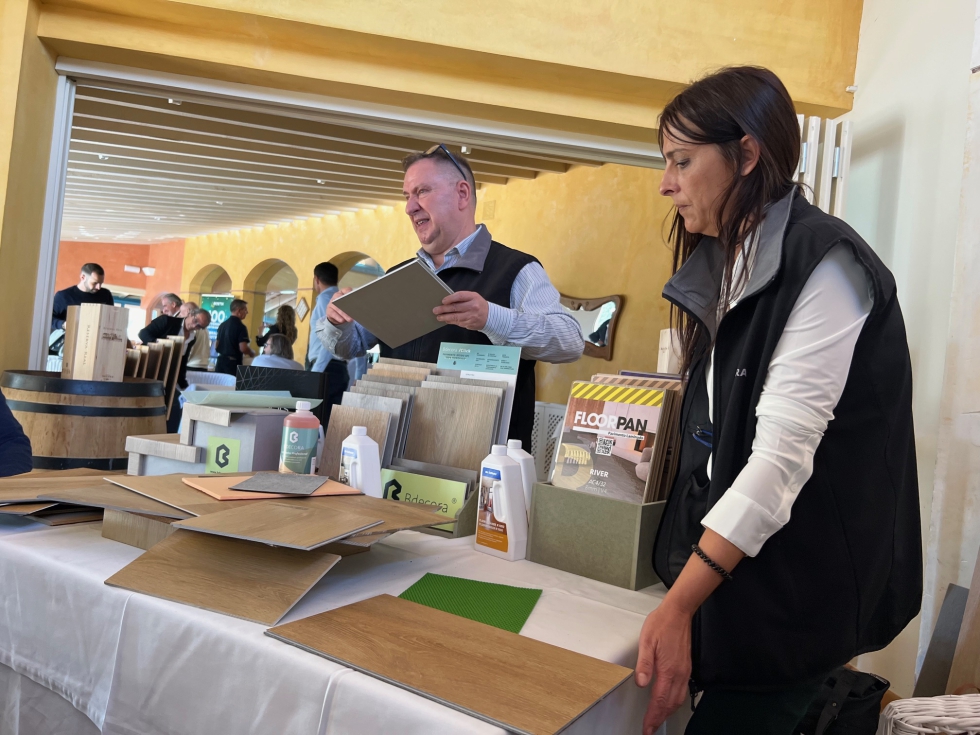 Exterpark centró su intervención en las mejoras en el sistema de entarimado de exteriores, así como en los pies regulables, que ahora van desde 5 cm a 1 m.Timbertop dio a conocer a los profesionales asistentes su oferta de suelos de madera con colores reactivos, conseguidos a través de reacciones de taninos del roble, que dan lugar acabados diferenciados en suelos tricapa de roble.Bostik dio a conocer su nuevo catálogo 2024, en el que se incorpora un nuevo sistema antihumedad que acelera el tiempo de secado, así como una imprimación de dos componentes para aplicar sobre un parquet anterior.Sant Just Parquets acudió a la cita con losetas de parquet de 600 x 600 mm en roble “a un precio muy competitivo”, así como una espiga rústica “totalmente acabada y en stock”.El stand de Vallsfusta se centró en las tarimas de bambú de Moso Bamboo, sostenibles y resistentes, como relevo natural de las de maderas tropicales cada vez más sujetas a controles y certificaciones.Bdecora presentó los pavimentos SPC 100% hidrófugos, así como diferentes bases para cada necesidad, incluidas las de corcho compactado y PET, así como remates para escalones a medida, en una sola pieza. Otro producto que están potenciando es Floorpan, con click de Unilin y cabados mate y waterproof.Las piezas a medida en diferentes materiales para escaleras, mobiliario, etc. de Complepark atrajeron la atención de los visitantes, que valoraron la posibilidad de elaboración a medida y la posibilidad de realizar formas curvas.Gabarró acudió con una completa selección de su oferta que incluye tarimas de bambú y tecnológicas, madera termotratada, suelos vinílicos Adore, laminados Egger y parquet multicapa.Finsa mostró en su stand la amplia colección de suelos Finfloor, a la medida de cada estilo y necesidad.
